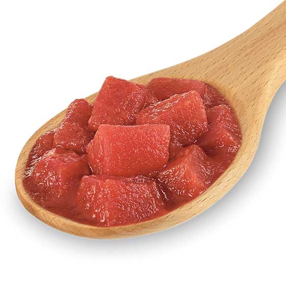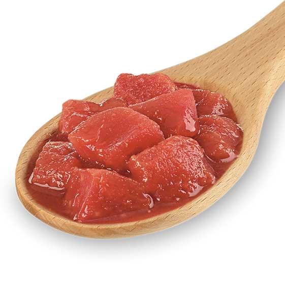Fresh, vine-ripened California tomatoes cut into a uniform 3/4" dice, peeled and packed in rich tomato juice for full flavor–now available in a pouch!
